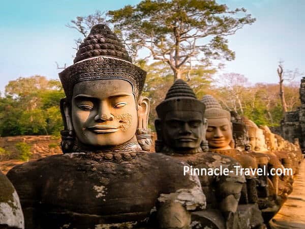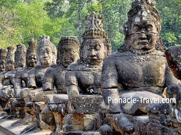 Today you will embark on a tour proceed to Angkor Thom Area via Angkor Thom Temple South Gate inside the walls of this city, you will tour toBayon is the exact center of the city of Angkor Thom and located 200m northwest of the Bayon is the Baphuon, a single sanctuary temple-mountain situated on a high-base. Continue to Phimean Akas Temple built of roughly hewn sanstone blocks and has little decoration. Next to Elephants Terrace dedicated Buddhist and replica to the Bayon style of art. Afterwards head to the Leper King Terrace faced with dramatic bas-relief and carries on the grandeur theme that characterizes the building during jayavaram VII’s region. You will also tour to Royal Palace, Woman and Man Pond. Following visit the Ta-Prom Temple surrounding have made UNESCO World Heritage Site one of Angkor most visit temple. After lunch, continue our journey to Angkor Wat Temple one of the seven greatest architectural wonders of the world built in between the 9th – 13th century. Lastly make a visit to Phnom Bakheng to view beautiful sunset.