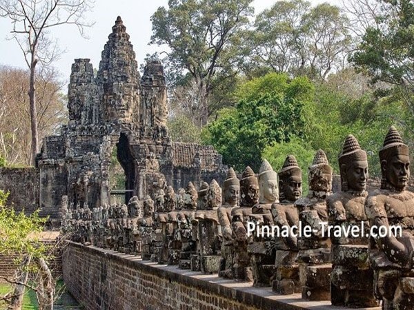 Today you will embark on a tour to discover the spectacular Angkor Thom and Angkor Wat regions, Start the day with a visit to the Angkor Thom Temple South Gate. Inside thewalls of this city, you will tour to Bayon Temple standing in the exact center of the city of Angkor Thom. Located 200m northwest of the Bayon is theBaphuon Temple, a single sanctuary temple-mountain situated on a high base. Then, visit the Phimean Akas Temple, built of roughly hewn sandstone blocks and has little decoration. Next visit to Elephants Terrace, dedicated to Buddhist and replica to the Bayon style of art. Afterwards head to Leper King Terrace faced with dramatic bas-reliefs and carries on the grandeur theme that characterizes the building during Jayavaram VII’s region. You will also tour to Royal Palace, Woman and Man Pond, enclosed by a laterite wall with only the base remaining today. Thereafter proceed visit to Ta-Prom Temple, built in the bayon style from late 12th to early 13th century, the photogenic and atmospheric combination of trees growing out of the ruins and the jungle surrounding have made the UNESCO World Heritage Site one of Angkor’s most visited temples. After lunch, continue our journey to Angkor Wat Temple – one of the seven greatest architectural wonders of the world, built in between the 9th – 13th century, Last day of your make a visit to Phnom Bakheng for its Beautiful Sunset.